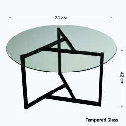 Elegantti pieni metallirunkoinen pöytä sohvan tai nojatuolien kanssa yhdistettäväksi. Tyylin viimeistelee kirkas lasinen pöytätaso.
