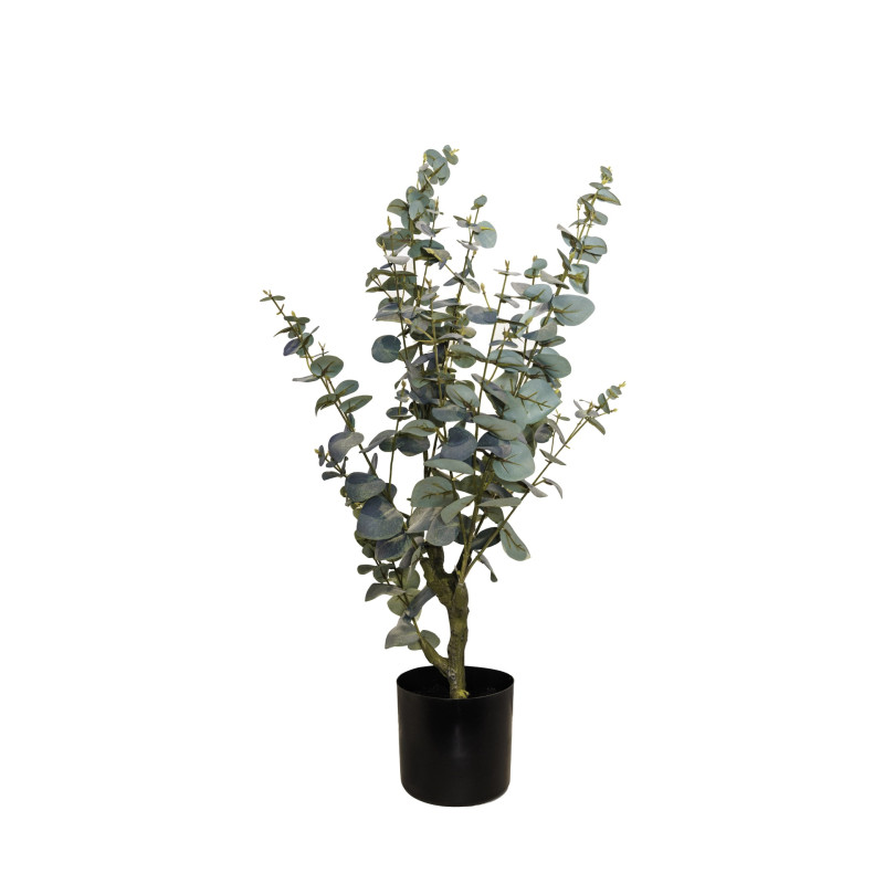 Luonnollisen näköinen, todella upea eukalyptus tekokasvi ruukussa. Kauniin monisävyiset, mattapintaiset lehdet luovat kasvista erittäin aidon näköisen.