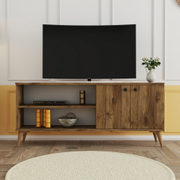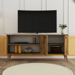 Tämä tyylikäs TV-taso neljällä tasolla yhdistää elegantin muotoilun ja runsaan säilytystilan. Taso toimii sekä sisustuselementtinä että käytännöllisenä säilytysratkaisuna.