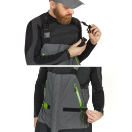 Monipuolinen vuorillinen kalvopuku, joka suojaa tuulelta ja sateelta ulkona liikuttaessa, ja erityisesti kalastettaessa. Hengittävä ja kestävä materiaali varmistaa liikkumisen mukavuuden sekä kuivana ja lämpimänä pysymisen haastavissakin sääolosuhteissa. Vuorilla varustettu malli, joka suojaa kastumiselta, ja pitää lämpimänä jopa -10c asteen olosuhteissa, myös kalastettaessa istualtaan. Puvun olennaisilta osin vahvistetut materiaalit ja myrskyläpillä varustetut vetoketjut antavat lisäsuojaa ankarissa sääoloissa. Väljä leikkaus mahdollistaa kerrospukeutumisen, ja tilavat taskut tarjoavat runsaasti säilytystilaa kaikille olennaisille tarvikkeille.