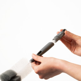 2in1-pullo- ja tuttipullonpesuharja on täydellinen ratkaisu vauvan tarvikkeiden perusteelliseen puhdistukseen. Sen mukana tuleva pieni tuttipullon harja on kätevästi säilytettävissä suuremman harjan varressa, mikä säästää tilaa ja helpottaa käyttöä. Pullonharjan pitkä varsi ja joustava pesusieni mahdollistavat tehokkaan puhdistuksen pullon pohjaa myöten, samalla kun kestävät nailonharjakset poistavat itsepintaiset maitotahrat vahingoittamatta pulloa. Tämä harja on suunniteltu erityisesti vauvojen tarvikkeiden, kuten tuttipullojen, tuttien ja rintapumppujen, hygieeniseen puhdistukseen.