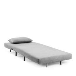 APP1 vuodetuoli muuntuu yhden hengen vuoteeksi käden käänteessä. Lisäjalat vuodeasentoa varten löytyvät kätevästi vetoketjujen takaa. Toimitukseen sisältyy myös sohvatyyny.
