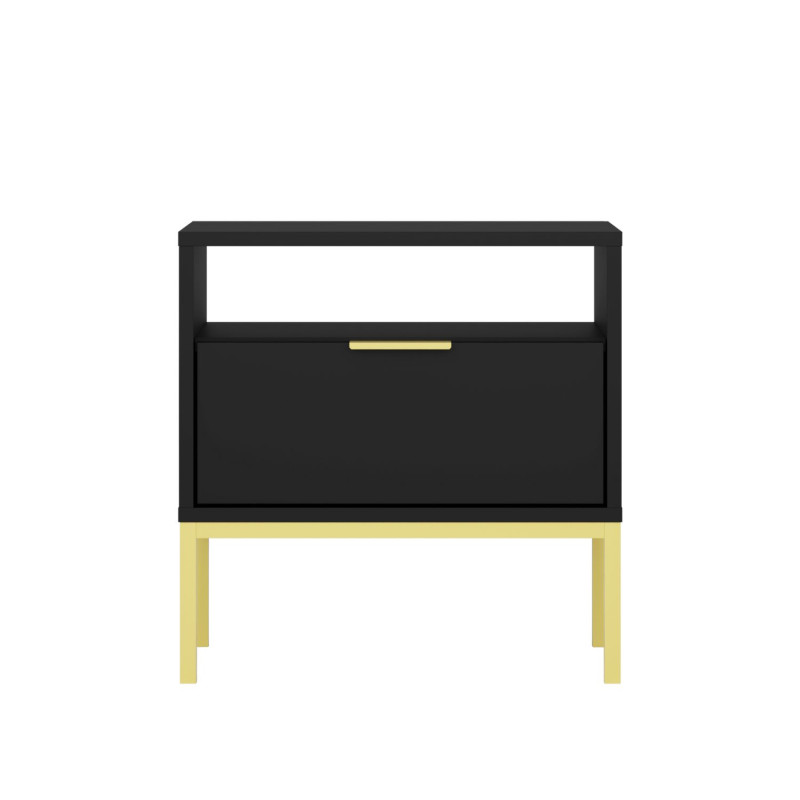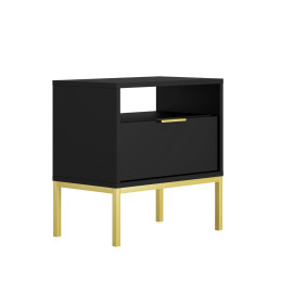 Austin yöpöytä on täydellinen yhdistelmä modernia muotoilua sekä käytännöllisyyttä. Tämä yöpöytä erottuu edukseen vetolaatikollaan, joka tarjoaa runsaasti säilytystilaa kaikille tärkeille esineille, jotka haluat pitää käden ulottuvilla, kuten kirjoille, silmälaseille tai kaukosäätimelle. Laatikon yläpuolella on avoin hylly, joka on ihanteellinen herätyskellon tai suosikkivalokuvien sijoittamiseen, luoden kodikkaan ja toimivan tilan sängyn viereen.